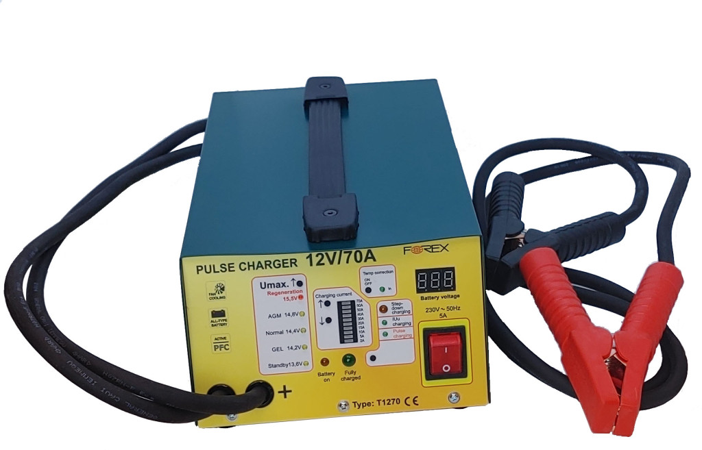 Akkumulátortöltő 12V 70A, 3 m-es töltővezetékkel